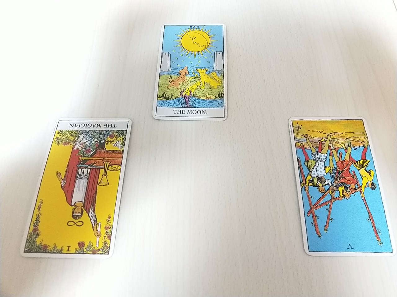カードは、 ムーン、マジシャン、ワンドの5です。