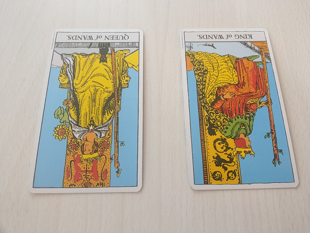カードは、ワンドのクイーン、ワンドのキングです。